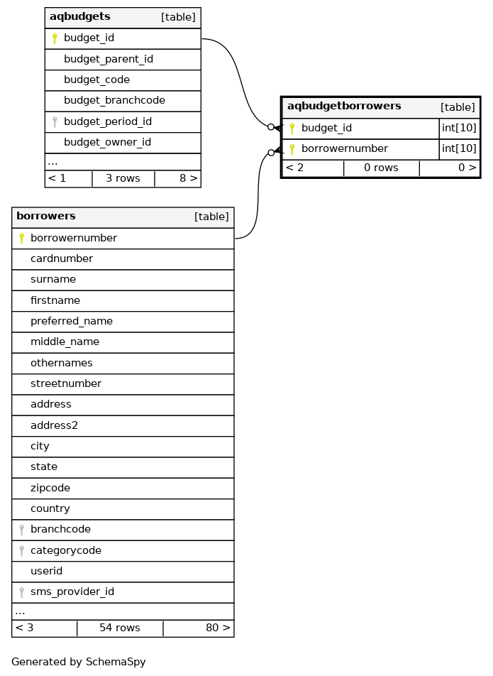 | aqbudgetborrowers_s_pk | Primary key | Asc/Asc | budget_id + borrowernumber |
