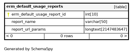 | PRIMARY | Must be unique | Asc | erm_default_usage_report_id |