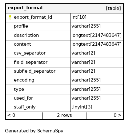 | PRIMARY | Must be unique | Asc | export_format_id |