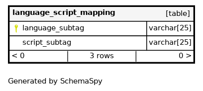 | language_script_mapping_s_pk | Primary key | Asc | language_subtag |