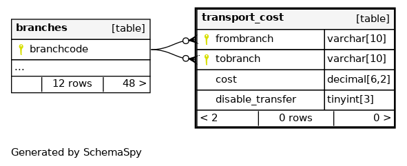 | transport_cost_s_pk | Primary key | Asc/Asc | frombranch + tobranch |